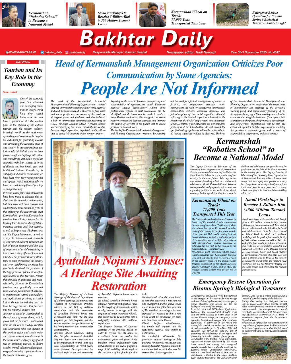 صفحه اول روزنامه‌های کرمانشاه در ۱۳ آبان‌ماه