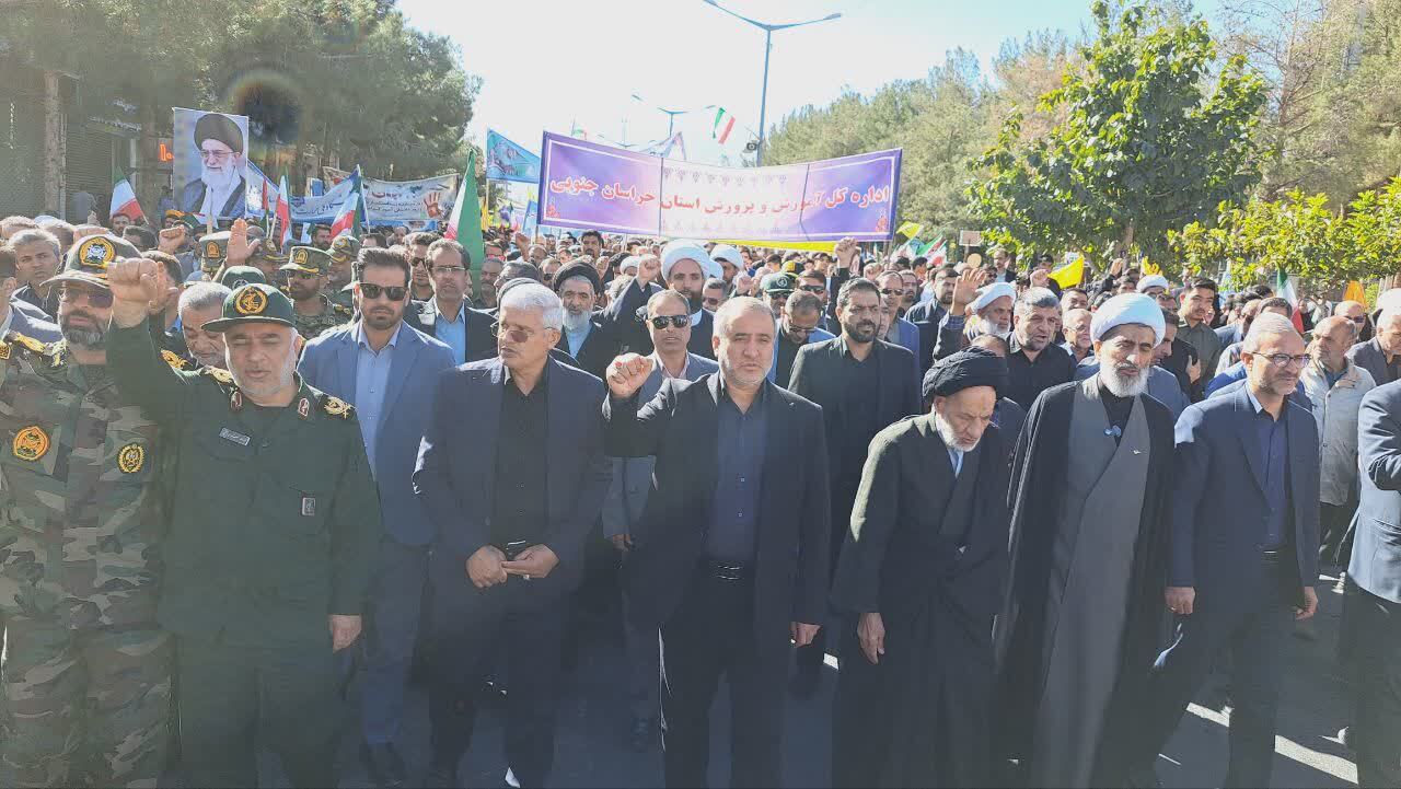صدا و سیما/ راهپیمایی یوم الله ۱۳ آبان با شعار متحد و استوار؛ مقابل استکبار در نقاط مختلف خراسان جنوبی با حضور دانش آموزان و مردم برگزار شد.