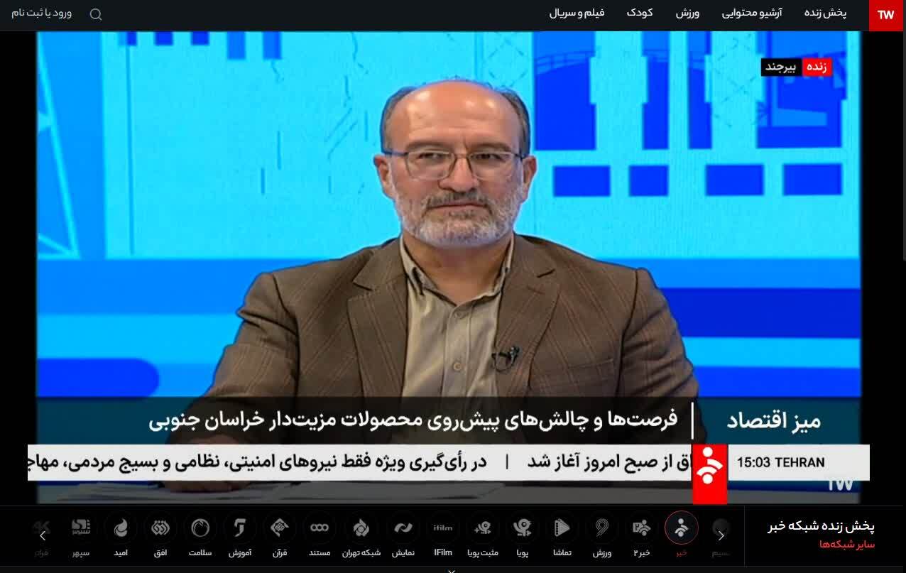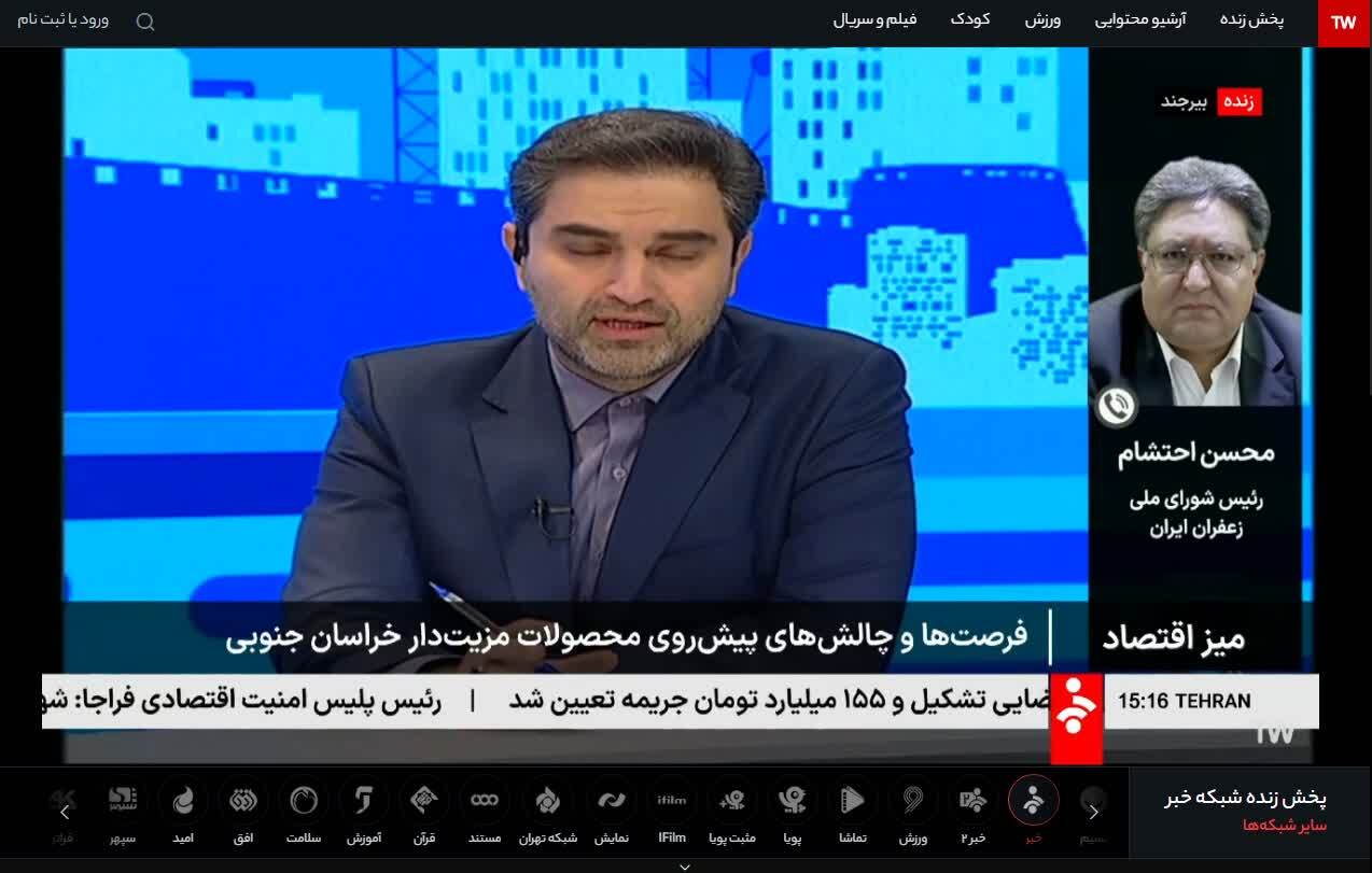 به گزارش خبرگزاری صدا و سیمای خراسان جنوبی، احتشام در برنامه زنده تلویزیونی میز اقتصاد شبکه بین المللی خبر گفت: تنها ۱۵ درصد زعفران ایران به صورت بسته بندی به خارج از کشور صادر میشود و این چالش اصلی در صادرات زعفران است.