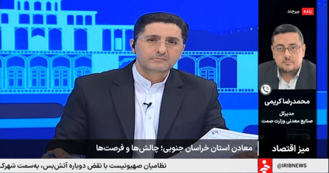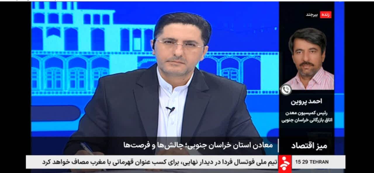 صدا و سیما/ معادن خراسان جنوبی، چالش‌ها و فرصت ها، مضوع امروز میز اقتصاد شبکه بین المللی خبر در رویداد ایران جان در خراسان جنوبی بود.