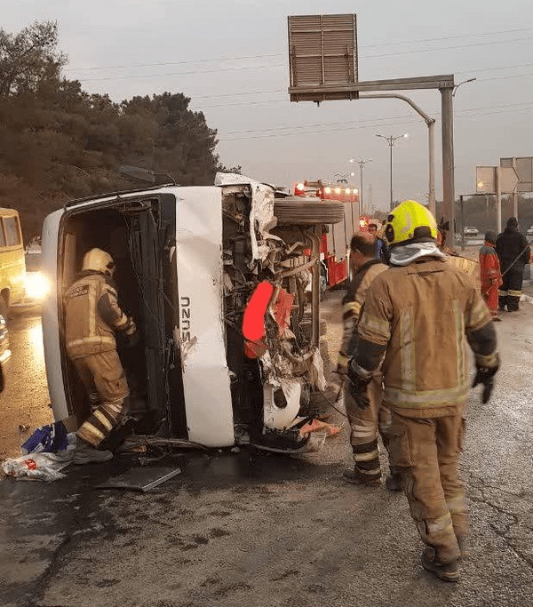 عکس/ واژگونی مینیبوس در جنوب تهران