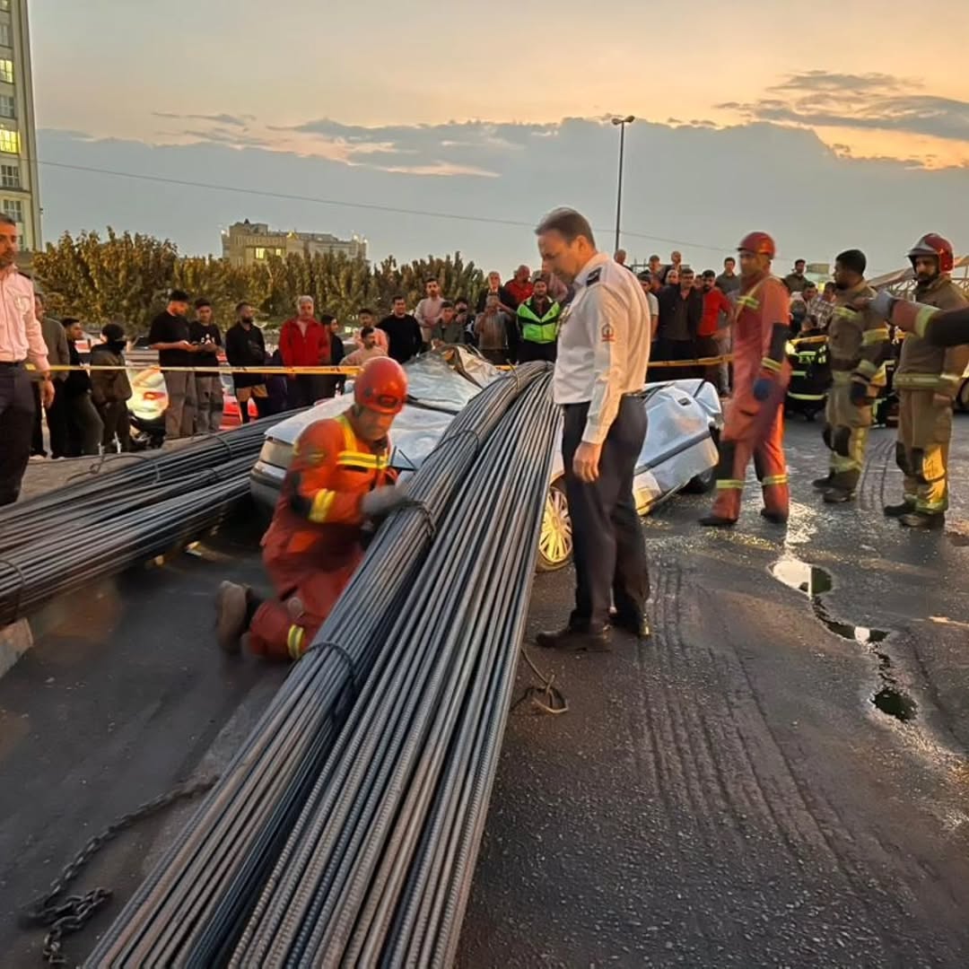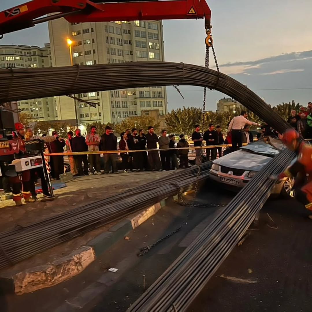 به گفته ملکی، یک سرنشین این خودرو که مرد ۳۰ ساله بود موفق شده خروج از خودرو شده بود اما راننده خودرو سمند در شرایطی که سقف خودرو به طور کامل تحت فشار بود گرفتار شد که در نهایت آتشنشانان با استفاده از جرثقیل میلگردها را جدا و با برش دادن قطعات خودرو این مرد ۵۰ ساله مصدوم را نجات دادند.