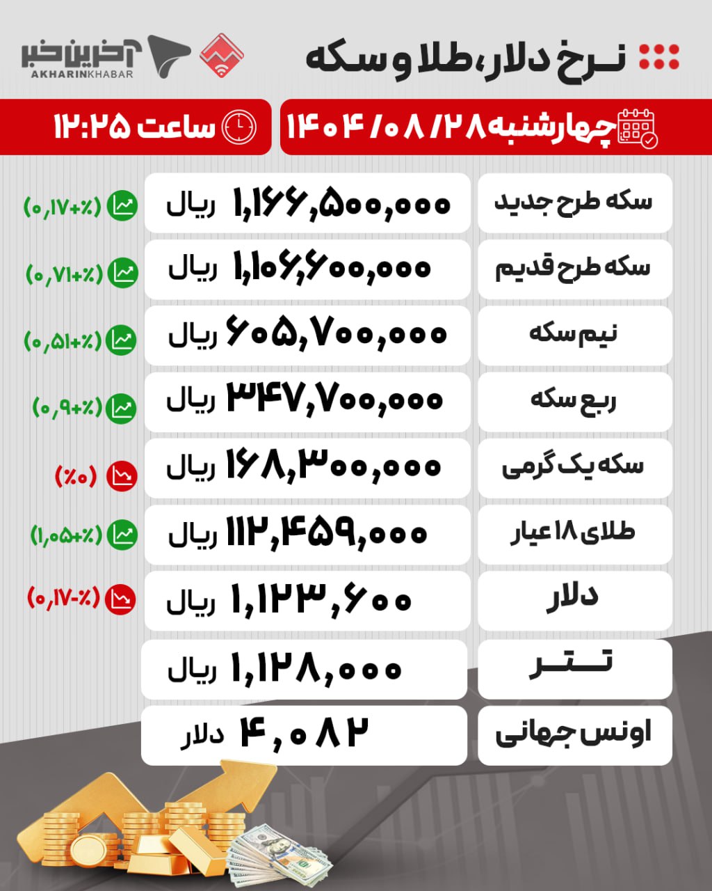 آخرین قیمتها در بازار طلا، سکه و ارز