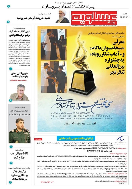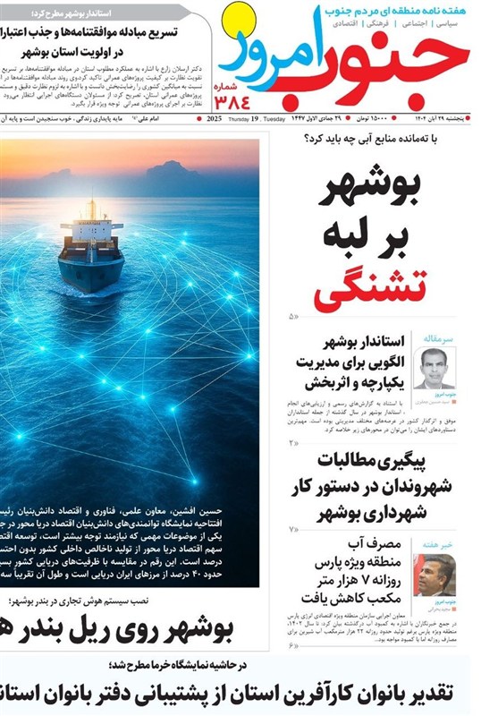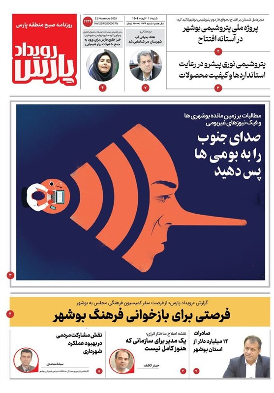 تسنیم/ تصاویر منتخب صفحات نخست روزنامههای شنبه یکم آذر در استان بوشهر منتشر شد.