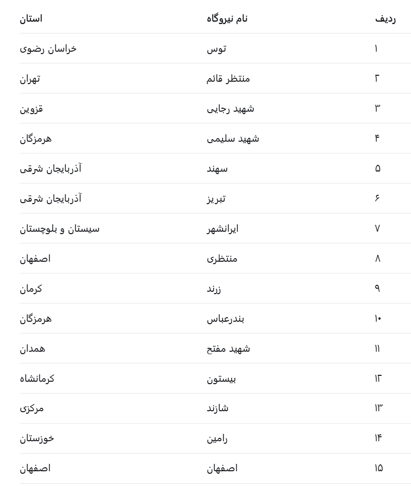 ۱۵ نیروگاه توس، منتظر قائم، شهید رجایی، شهید سلیمی، سهند، تبریز، ایرانشهر، منتظری، زرند، بندرعباس، شهید مفتح، بیستون، شازند، رامین و اصفهان توان مصرف حداکثر ۴۳ میلیون لیتر مازوت در روز را دارند که بر اساس آخرین آمار هماکنون ۲۱.۱ میلیون لیتر مازوت در روز میسوزانند.