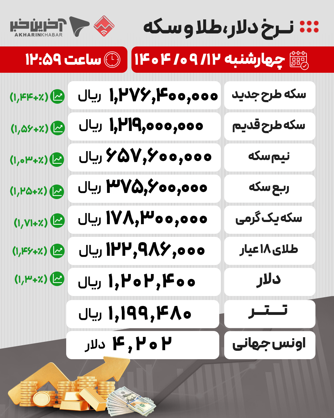 آخرین خبر/ آخرین قیمتها در بازار طلا، سکه و ارز در روز ۱۲ آذرماه ۱۴۰۴ از رکوردشکنی نرخ طلا حکایت دارد.
