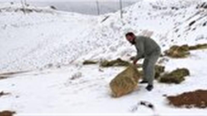 توزیع علوفه برای حیات وحش در منطقه حفاظت شده درمیان سربیشه