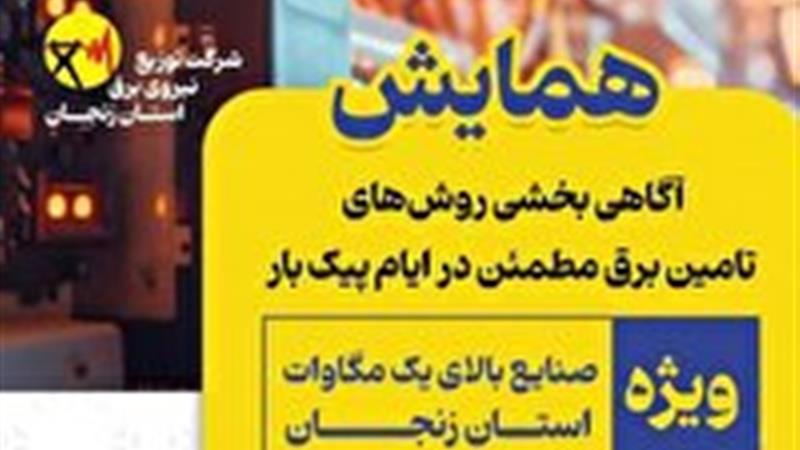 صدا و سیما/ همایش آگاهیبخشی روشهای تأمین برق مطمئن در ایام پیک بار، ویژه صنایع با مصرف بالای یک مگاوات استان زنجان برگزار می شود.