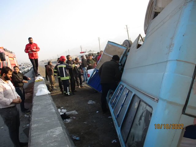 واژگونی مینیبوس کارگران در محور ساوه–شهر صنعتی کاوه با ۱۰ مصدوم