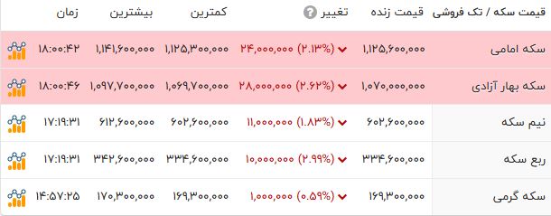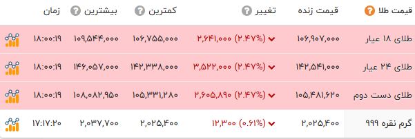 قیمت طلا و انواع سکه را در جدول زیر مشاهده میکنید.