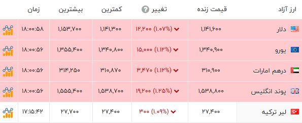 نرخ دلار به نقل از سایت شبکه اطلاعرسانی طلا، سکه و ارز، 114.160 تومان معامله شد.