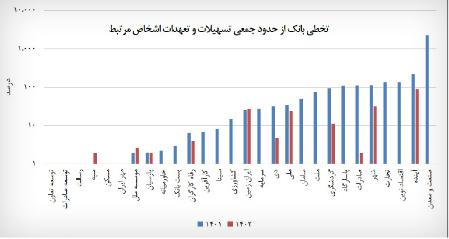 تخطی از حدود مجاز تسهیلات اشخاص مرتبط