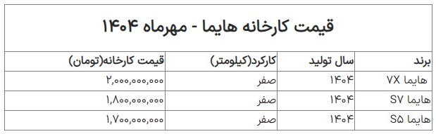 از سوی دیگر، قیمت هایما S۵ صفر کارخانه برای مدل ۱۴۰۴ یک میلیارد و ۷۰۰ میلیون تومان اعلام شده است؛ عددی که این کراساوور اقتصادی را در مرز رقابت با محصولاتی مانند چری تیگو ۵ و جک S۵ قرار میدهد.