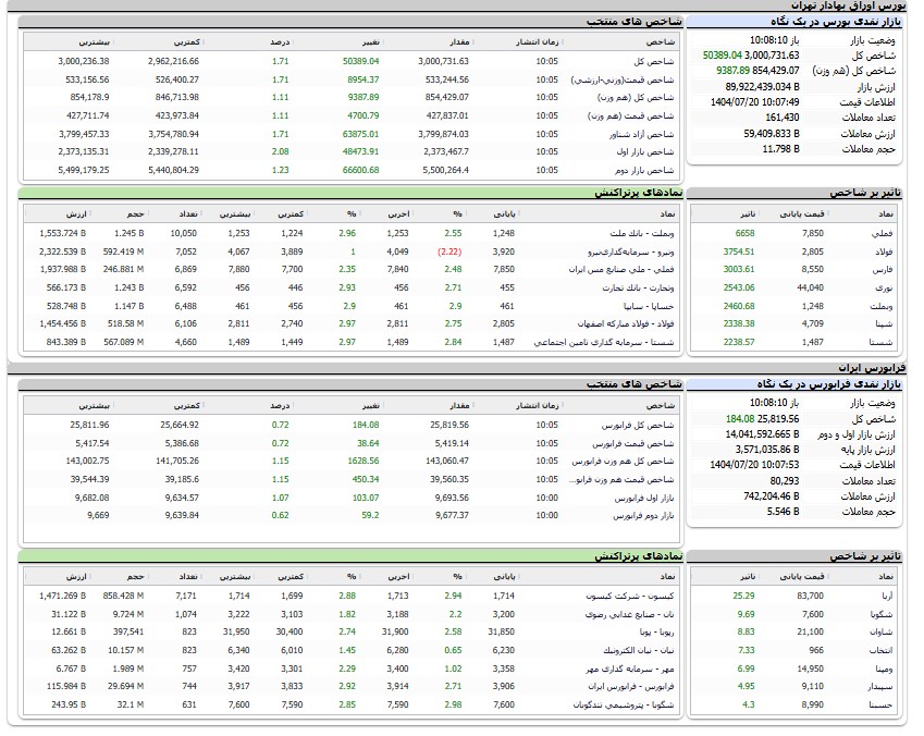 آخرین خبر/دقایقی قبل شاخص کل بورس با رشد 50.389 واحد جایگاه ۳ میلیون واحد را پس گرفت.