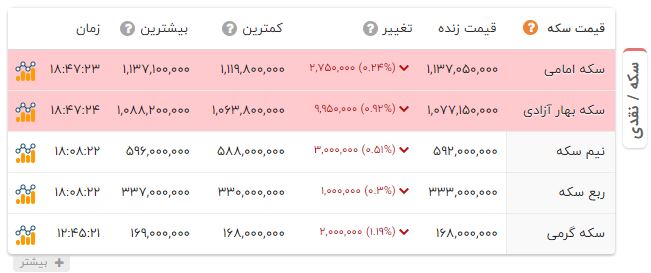 قیمت انواع مسکوکات طلا را در جدول زیر مشاهده فرمایید.