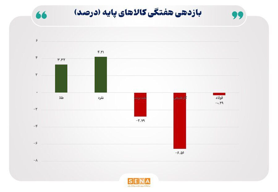 طلا با رشد ۳.۳۲ درصد و نقره با جهش ۴.۲۱ درصد بهترین عملکرد هفتگی را داشتند، اما نفت برنت با افت ۲.۷۹ درصد و گاز طبیعی با سقوط سنگین ۶.۵۶ درصد، بدترین هفته خود در ماههای اخیر را رقم زدند.
