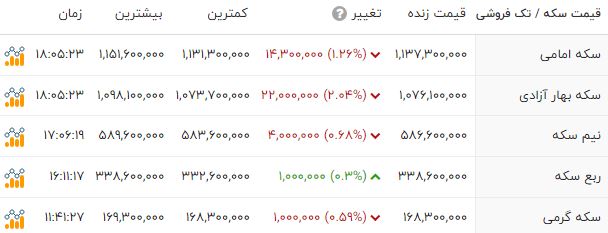 قیمت طلا و انواع سکه را در جدول زیر مشاهده میکنید.