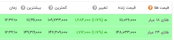 قیمت طلا و انواع سکه را در جدول زیر مشاهده می کنید.
