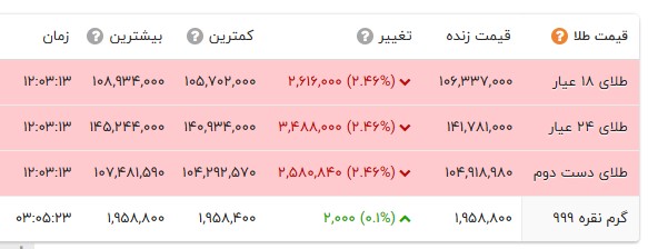 قیمت طلا و انواع سکه را در جدول زیر مشاهده می کنید.