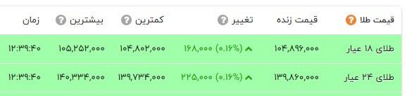 قیمت طلا و انواع سکه را در جدول زیر مشاهده می کنید.