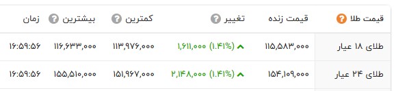قیمت طلا و انواع سکه را در جدول زیر مشاهده می کنید.