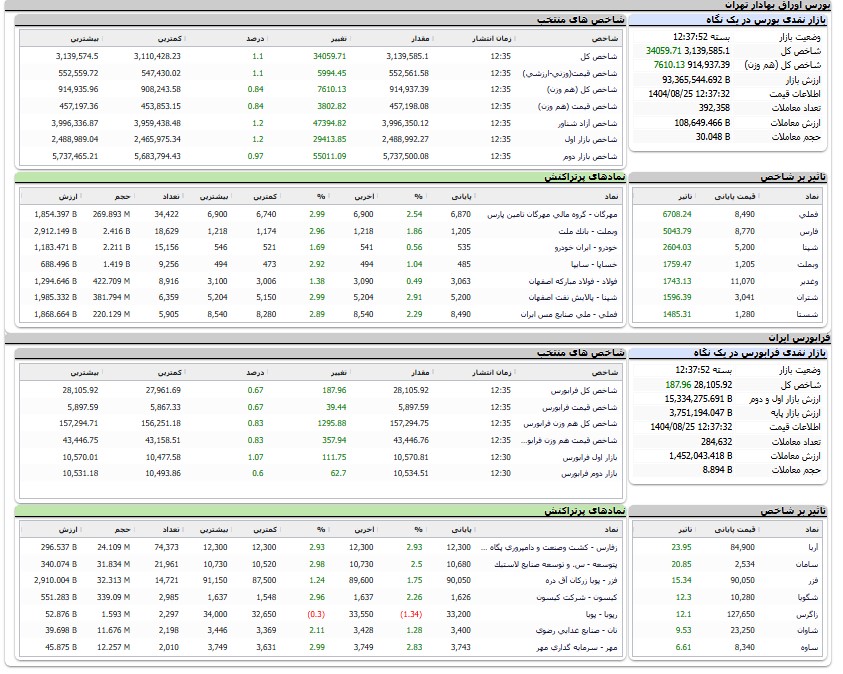 آخرین خبر/شاخص کل بورس با رشد ۳۴ هزار واحدی در پایان معاملات امروز به ۳ میلیون و ۱۳۹ هزار واحد رسید.