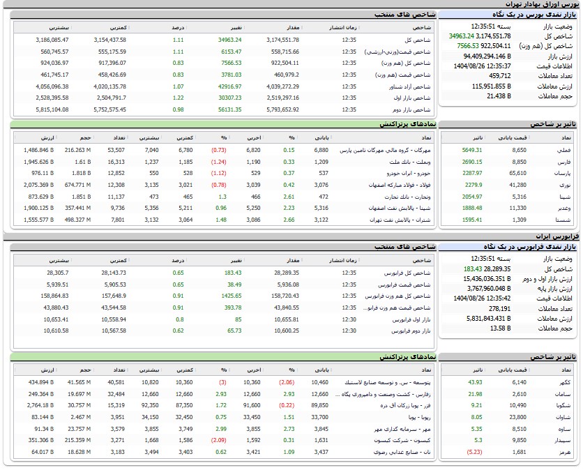 آخرین خبر/شاخص کل بورس با رشد ۳۴ هزار واحدی در پایان معاملات امروز به ۳ میلیون و ۱۷۴ هزار واحد رسید.شاخص کل (هم وزن): ۷ هزار واحد منفیارزش معاملات: ۱۱۴۶۰۰ میلیارد تومان