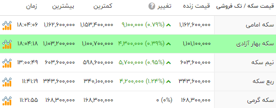 قیمت طلا و انواع سکه را در جدول زیر مشاهده میکنید.