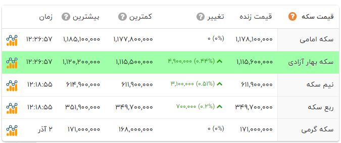 به گزارش آخرین خبر و تا لحظه تنظیم این خبر؛ سکه طرح قدیم با رشد 490 هزار تومانی قیمت، 111 میلیون و 560 هزار تومان خرید و فروش می شود. نیم سکه نیز با رشد 310 هزار تومانی قیمت، 61 میلیون و 190 هزار تومان به ثبت رسید.