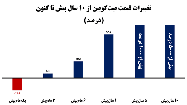 فارس/ بیتکوین در ده سال اخیر با در نظر گرفتن نوسان دلار، با رشد از ۱.۳ میلیون تومان به بیش از ۱۰ میلیارد تومان، بازدهی شگفتانگیز ۸۰۰ هزار درصدی ثبت کرد.