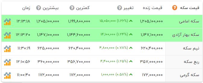 به گزارش آخرین خبر و تا لحظه تنظیم این خبر؛ سکه امامی با رشد یک میلیون و 505 هزار تومانی قیمت، 120 میلیون و 510 هزار تومن به فروش رسید. نیم سکه با رشد 480 هزار تومانی قیمت، 62 میلیون و 40 هزار تومان به ثبت رسید.