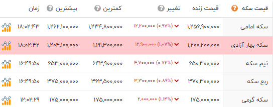 قیمت طلا و انواع سکه را در جدول زیر مشاهده میکنید.