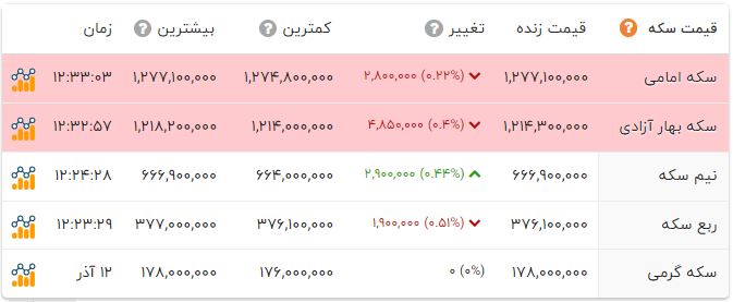 به گزارش آخرین خبر و تا لحظه تنظیم این خبر؛ سکه امامی با افت 280 هزار تومانی قیمت، 127 میلیون و 710 هزار تومان به ثبت رسید. ربع سکه نیز با کاهش 190 هزار تومانی قیمت، 37 میلیون و 610 هزار تومان به فروش رسید.