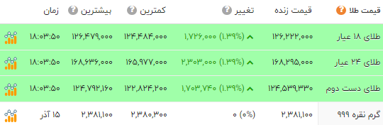 قیمت طلا و انواع سکه را در جدول زیر مشاهده میکنید.