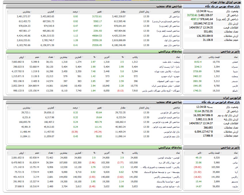 شاخص کل (هم وزن): ۴ هزار واحد مثبت