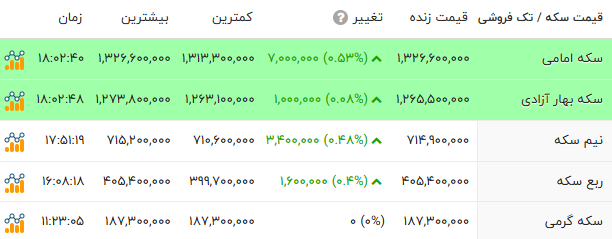 قیمت طلا و انواع سکه را در جدول زیر مشاهده میکنید.