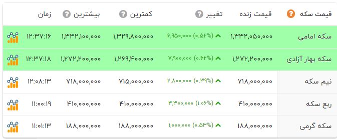 به گزارش آخرین خبر و تا لحظه تنظیم این خبر؛ سکه امامی با رشد 695 هزار تومانی قیمت، 133 میلیون و 205 هزار تومان ارزش گذاری شد. ربع سکه با رشد 430 هزار تومانی قیمت، 41 میلیون تومان به فروش می رسد.