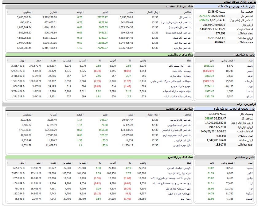 شاخص کل (هم وزن): ۶ هزار واحد مثبت