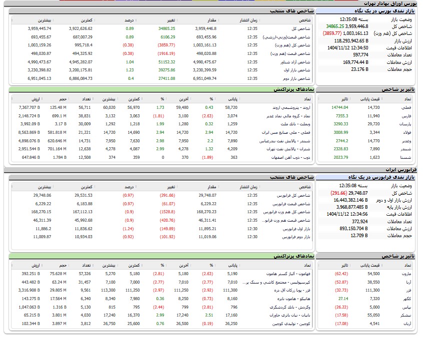 شاخص کل (هم وزن): ۳ هزار واحد منفی