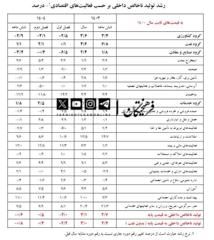 بدون احتساب نفت، وضعیت بدتر بود: سه ماه اول سال منفی ۲.۲ درصد و سه ماه دوم فقط مثبت ۰.۴ درصد.