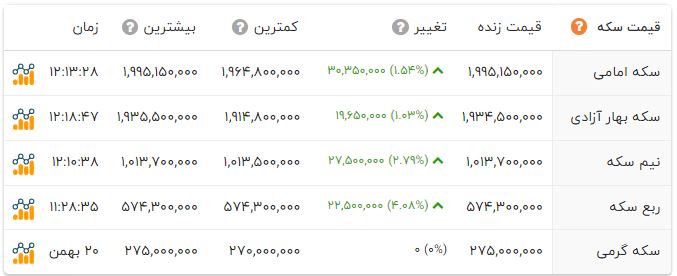 آخرین خبر/ امروز در بازار مسکوکات گران بها شاهد رشد قیمت ها هستیم به نحوی که سکه امامی در آستانه فتح کانال 200 میلیون تومانی قرار دارد.