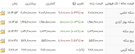 قیمت طلا و انواع سکه را در جدول زیر مشاهده میکنید.