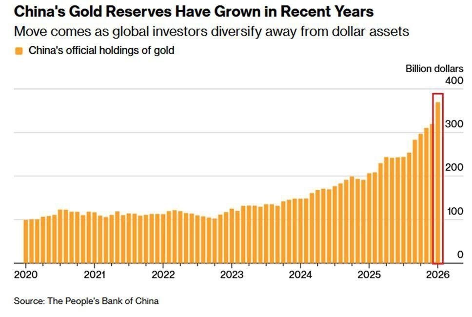 همانطور که در نمودار روند ذخایر طلای چین در سالهای اخیر (2020 تا 2026) مشهود است، یک شیب صعودی بسیار تند در ارزش ذخایر طلای این کشور شکل گرفته است. این حرکت استراتژیک درست در زمانی رخ میدهد که سرمایهگذاران جهانی و اقتصادهای بزرگ در تلاشند تا با تنوعبخشی به داراییهای خود، از اتکای صرف به داراییهای دلاری فاصله بگیرند.