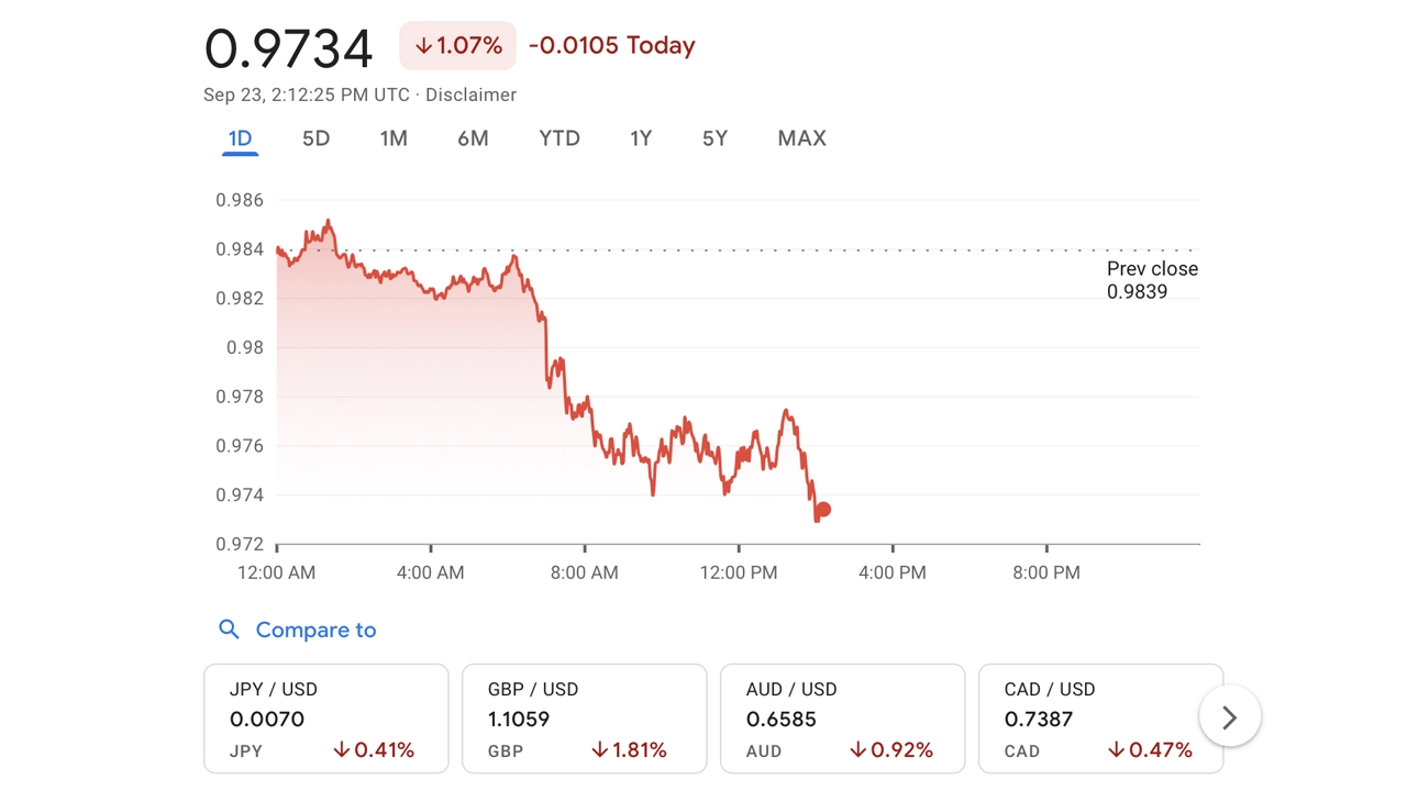 روز جمعه گذشته یورو، واحد پول رسمی ۱۹ کشور از ۲۷ کشور عضو اتحادیه اروپا، به ۰.۹۷۳۲ در برابر دلار آمریکا سقوط کرد.