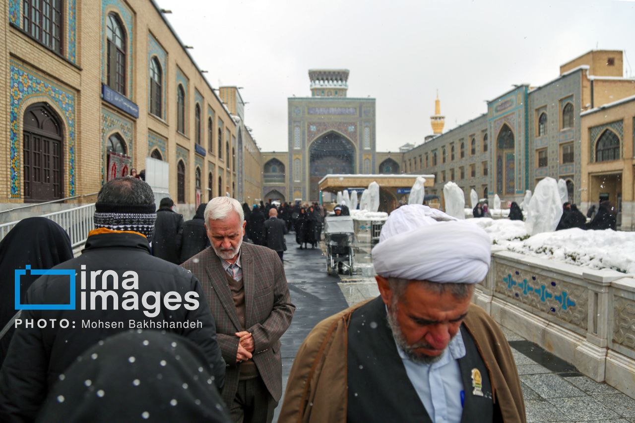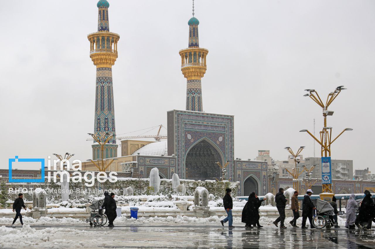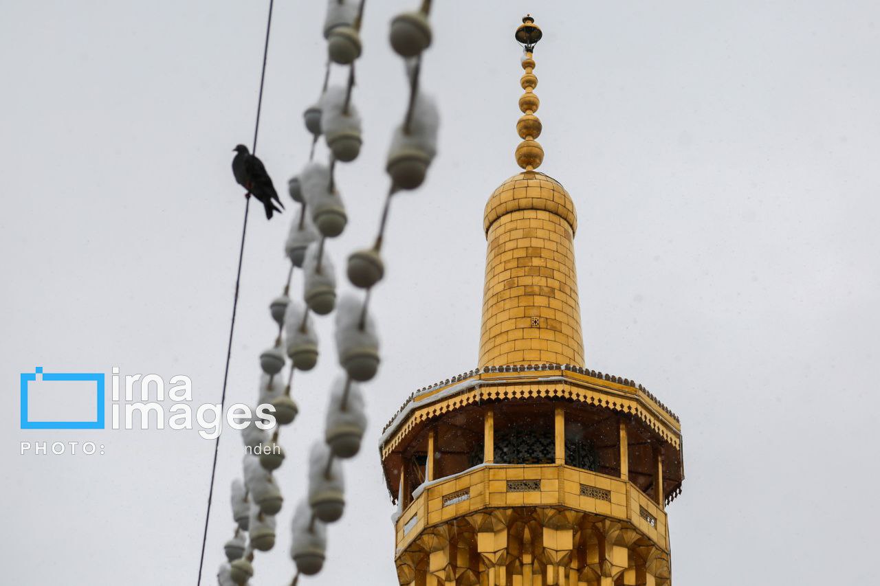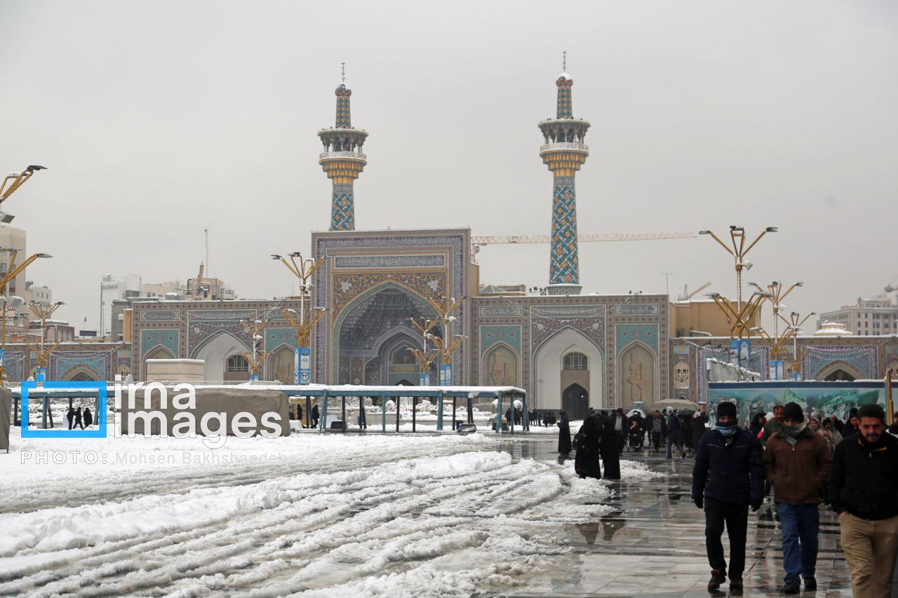 ایرنا/ بارش نخستین برف پاییزی، شامگاه جمعه و بامداد شنبه (۲۸ و ۲۹ آذر ۱۴۰۴)، بارگاه امام رضا (ع)، صحن ها و گنبد طلایی را سفیدپوش کرد و خادمان حرم رضوی اقدام به برف روبی صحن های حرم مطهر رضوی کردند.