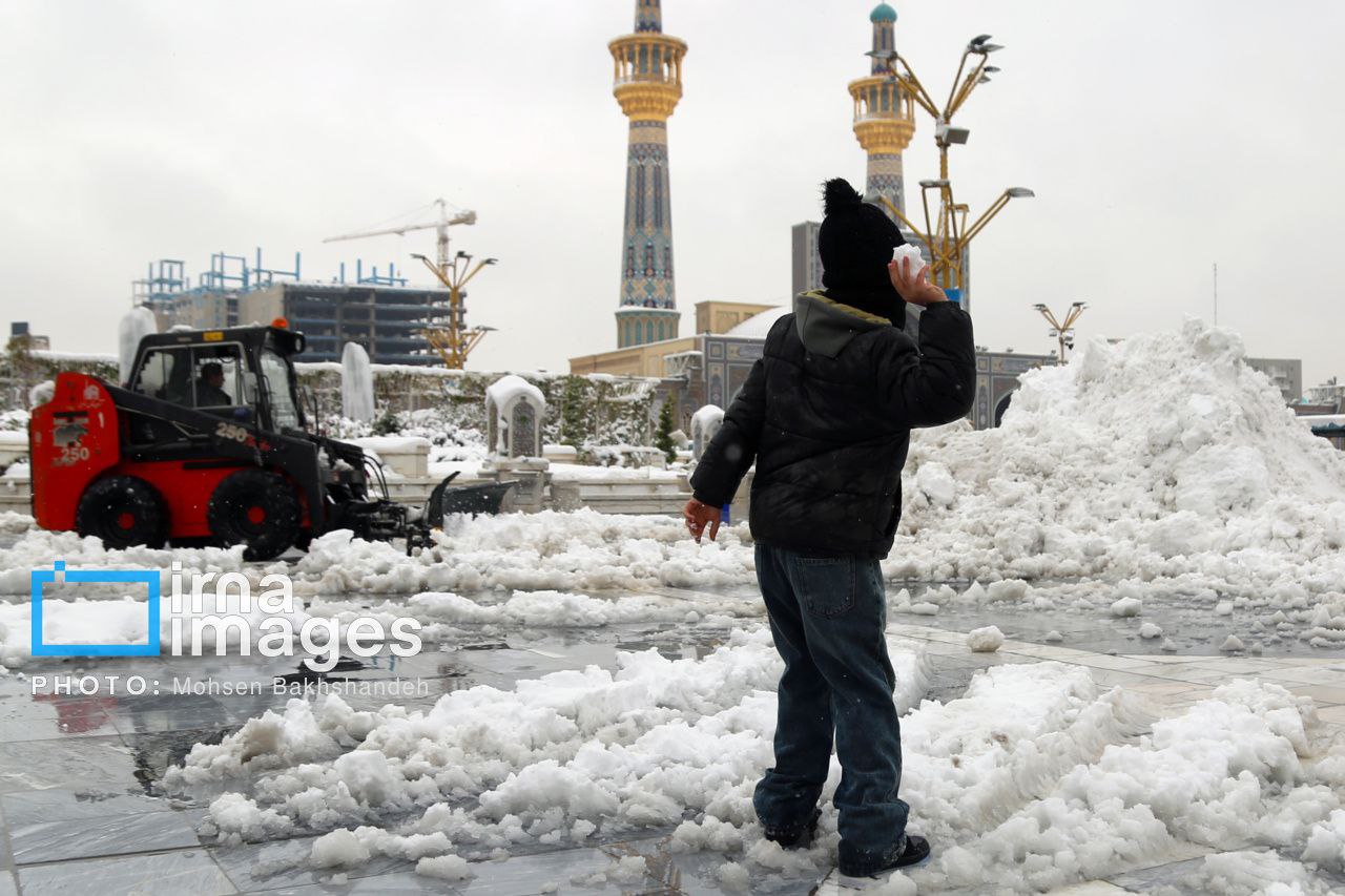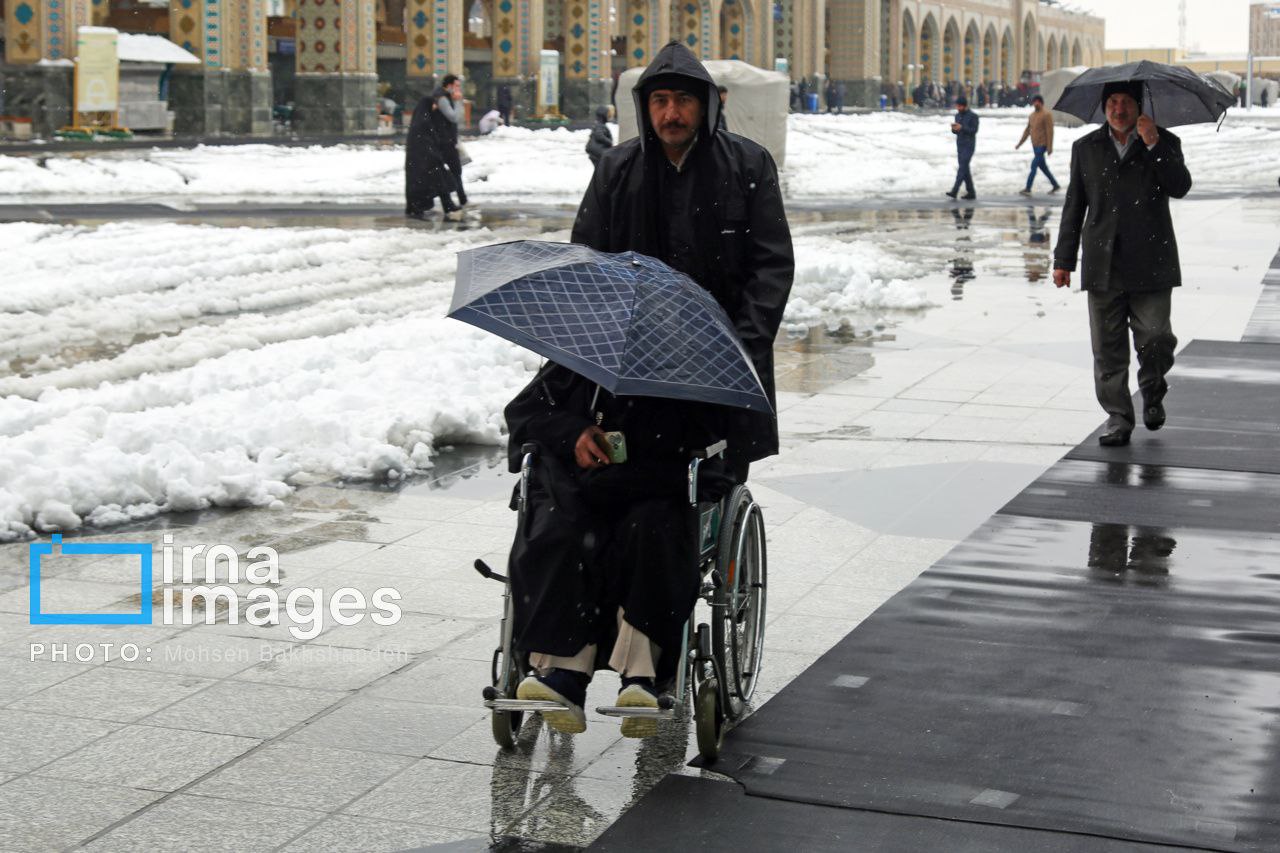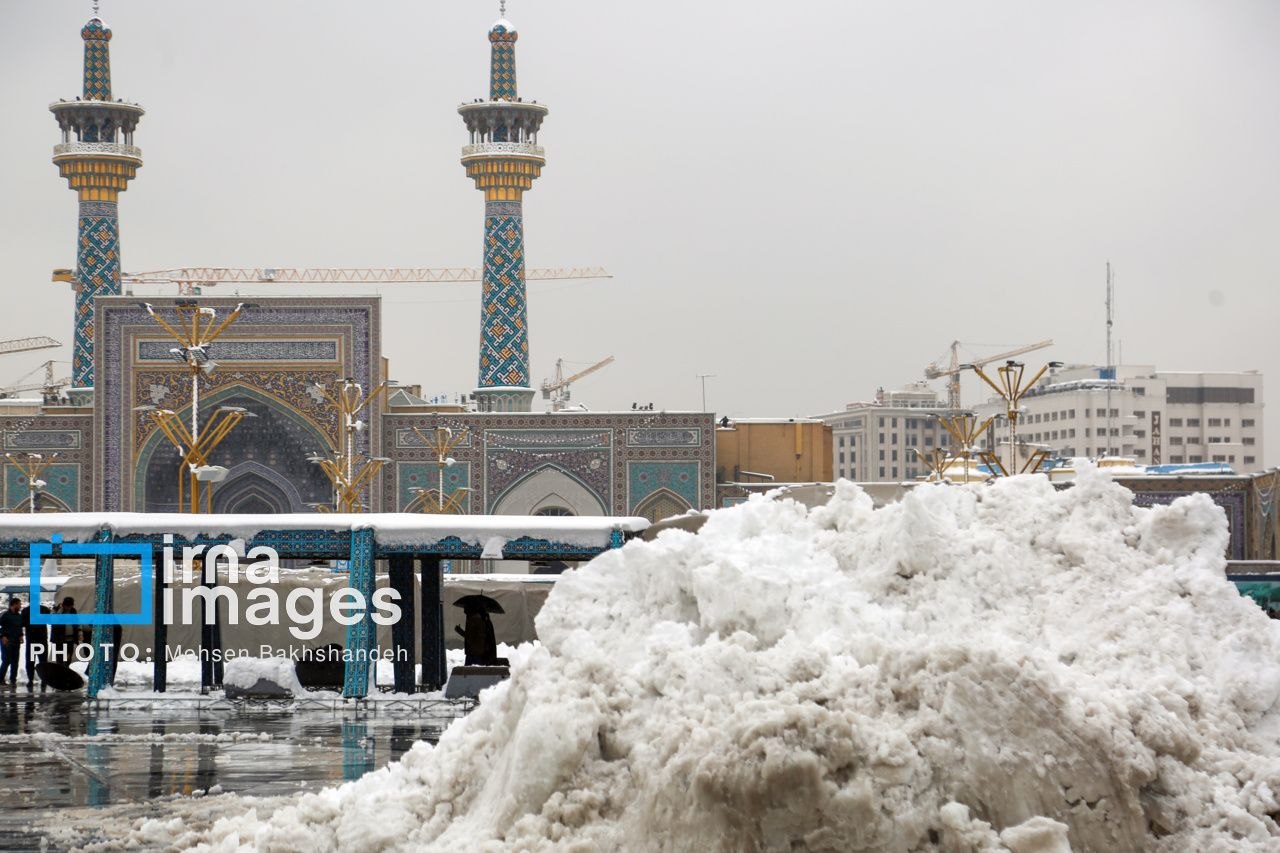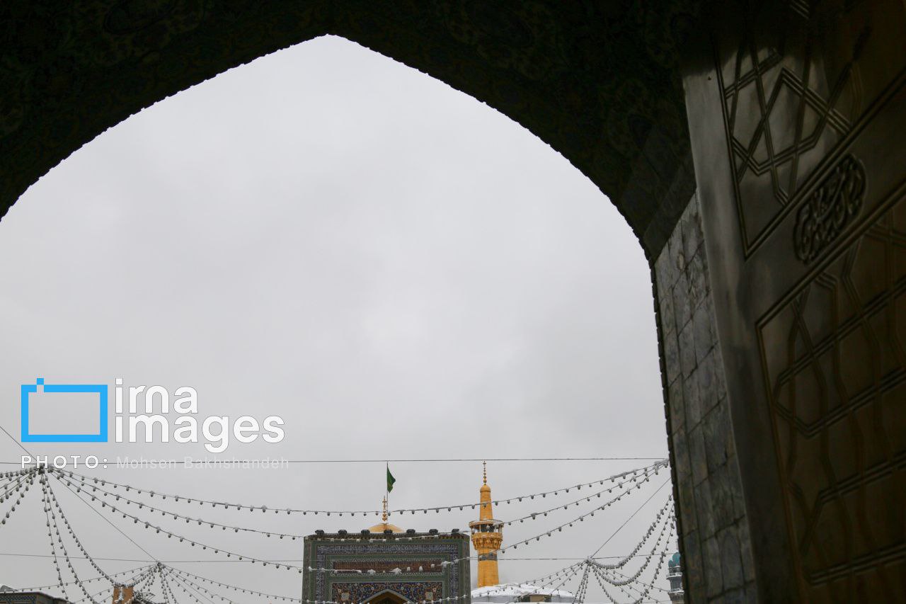ایرنا/ بارش نخستین برف پاییزی، شامگاه جمعه و بامداد شنبه (۲۸ و ۲۹ آذر ۱۴۰۴)، بارگاه امام رضا (ع)، صحن ها و گنبد طلایی را سفیدپوش کرد و خادمان حرم رضوی اقدام به برف روبی صحن های حرم مطهر رضوی کردند.