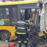 عکس/ برخورد اتوبوس با مانع در اتوبان ستاری
