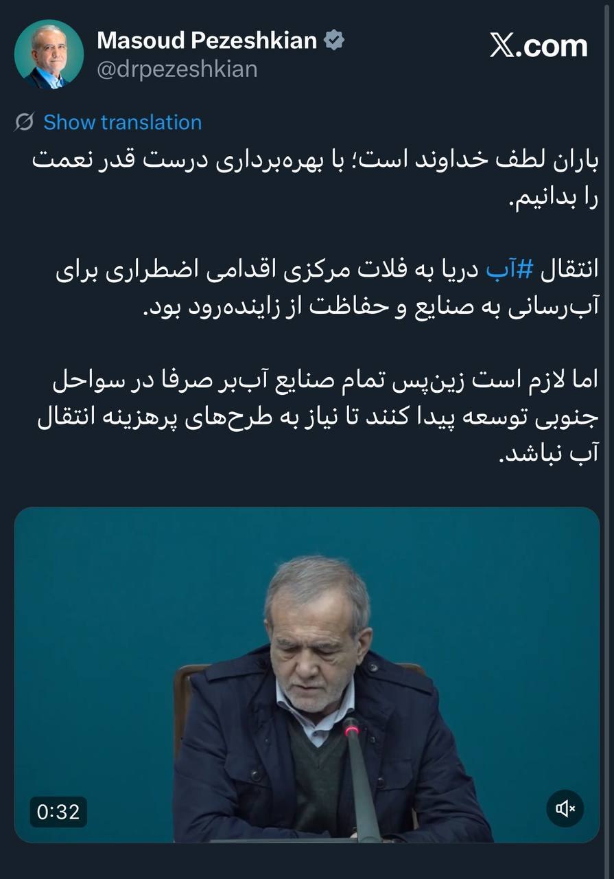پایگاه اطلاع رسانی دولت/ رئیسجمهور پزشکیان در شبکه اجتماعی ایکس نوشت: باران لطف خداوند است؛ با بهرهبرداری درست قدر نعمت را بدانیم
