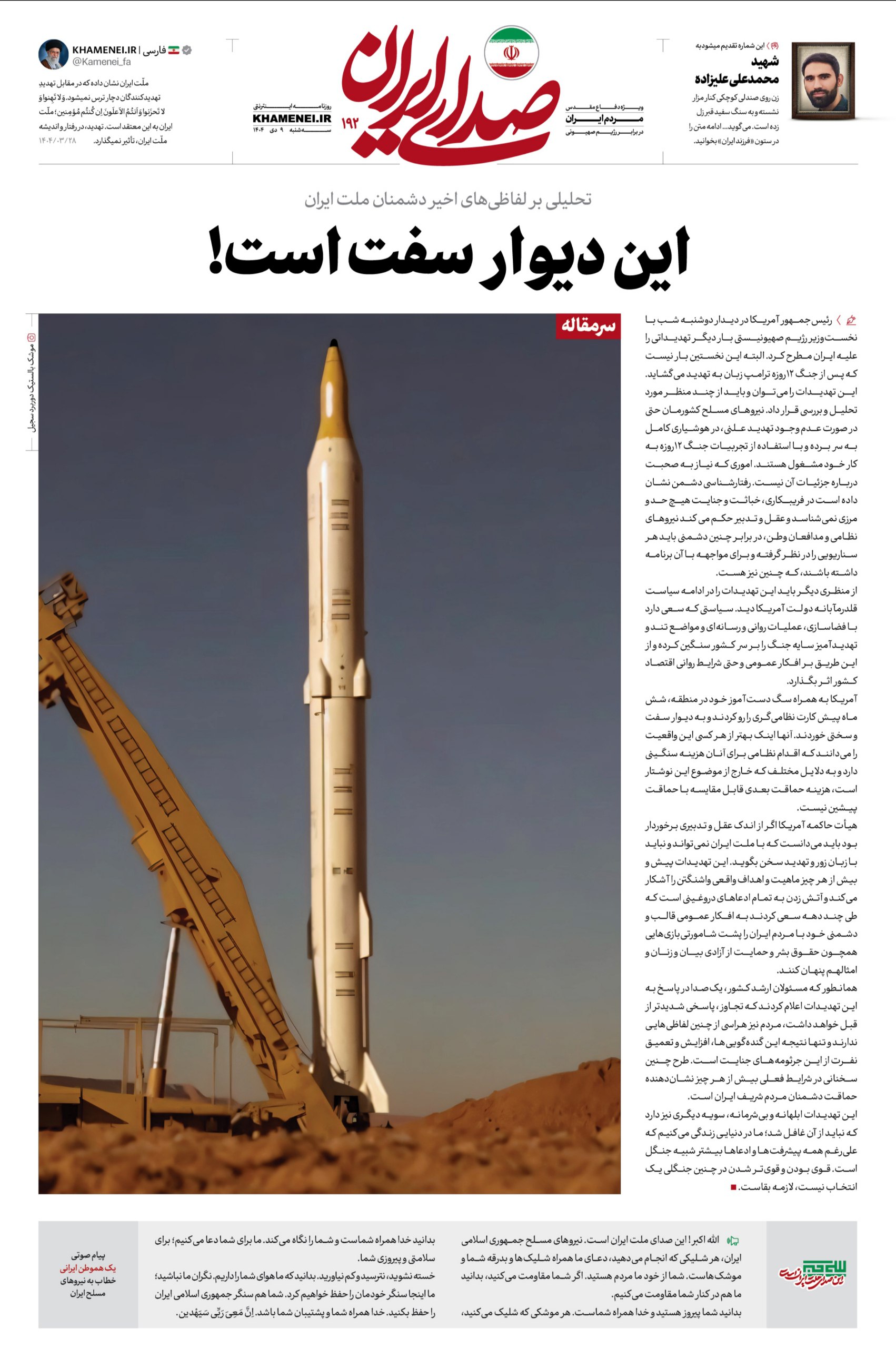 دریافت روزنامه اینترنتی «صدای ایران»؛ شماره صد و نود و دو