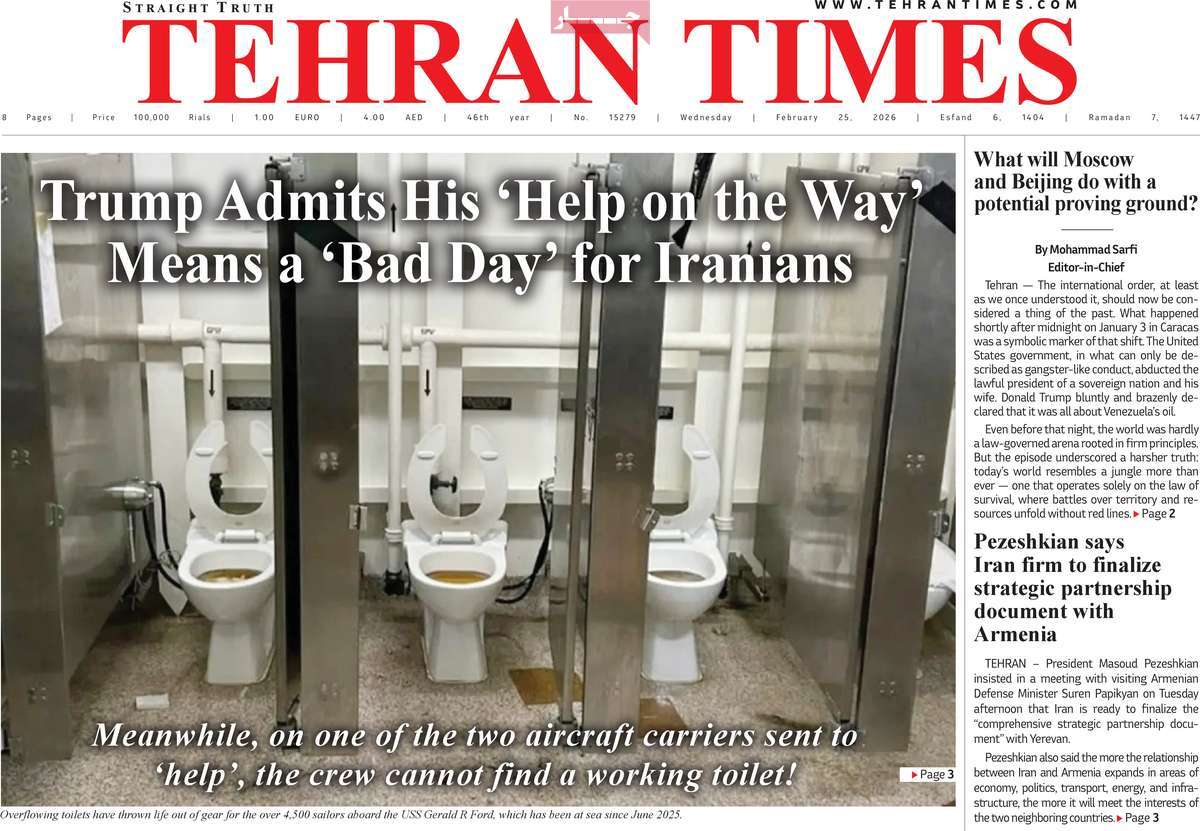 صفحه اول روزنامه Tehran Times چهارشنبه ۶ اسفند